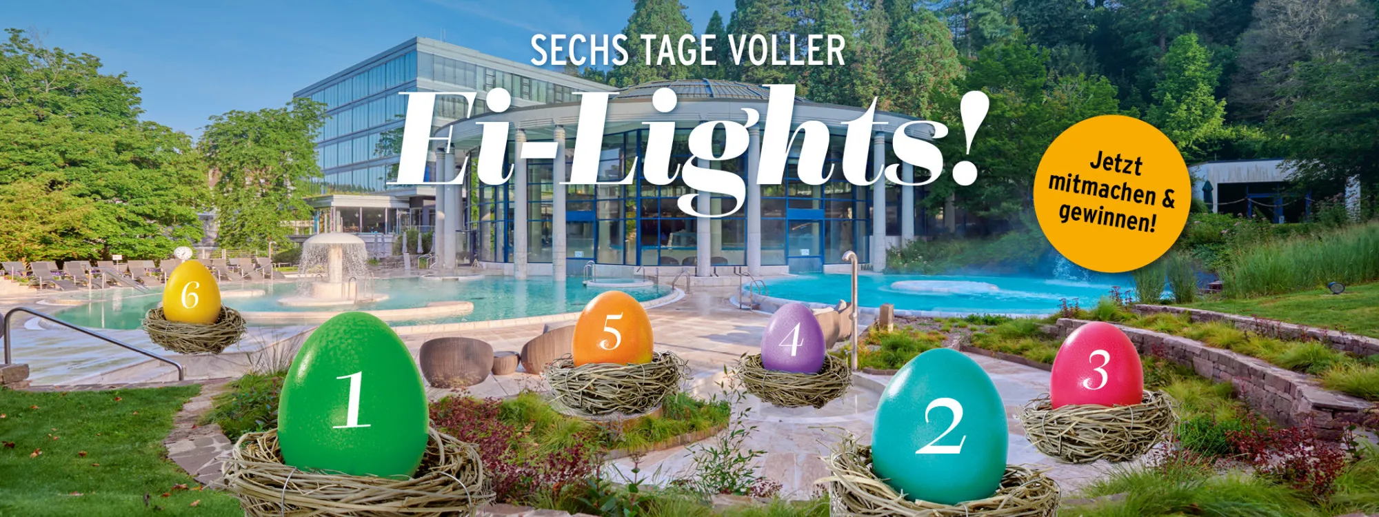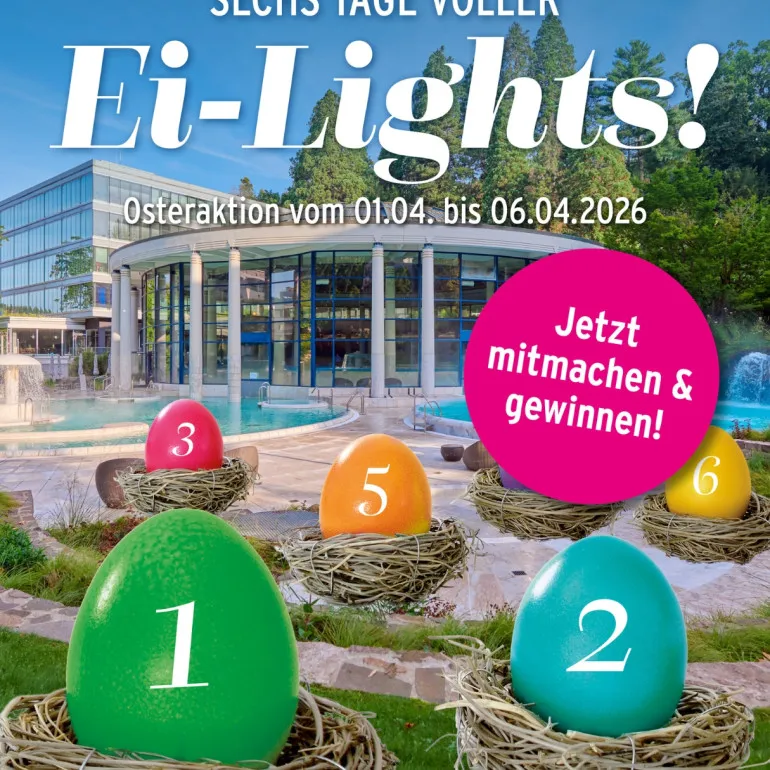 Entdecken Sie täglich neue Überraschungen in unserem Oster-Kalender. Öffnen Sie jetzt Ihr Osterei und sichern Sie sich die Chance auf entspannende Wohlfühlmomente!